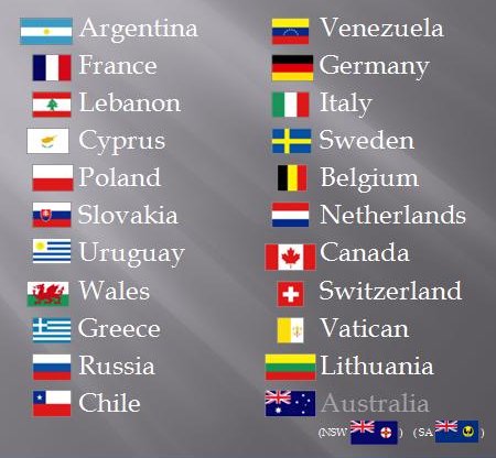 *’Australia’ listed in grey denotes that the Armenian Genocide is recognised by the state parliamentsof South Australia and New South Wales